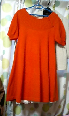 ニットワンピは、またおまえ…って感じの鮮やかなオレンジです。可愛いです。因みに半袖です。