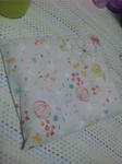 生地かわいい~ガーゼで薄いから気持ちクッションの柄が透けてるけど…ベージュに白の水玉だからそんなに目立たないし問題ナッシング