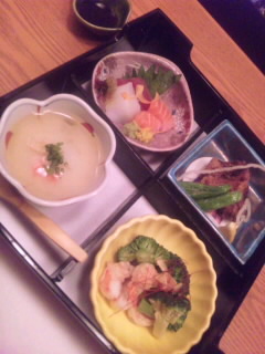 写真がメイン(?お弁当なのよ)であと蟹ごはんと湯豆腐(ミニ鍋)が付いてました。