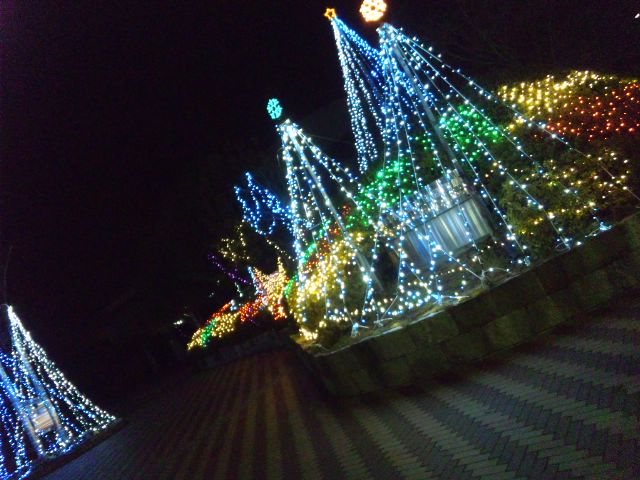 写真は市立図書館のライトアップ。帰りに前通るからぱちりしてみました